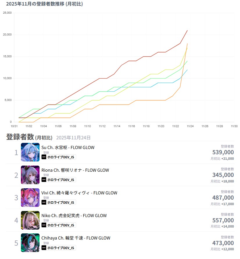 【ホロライブ】ちはーや伸び悩んでるって聞いてたけどそんなにヴィヴィと離れてないのな