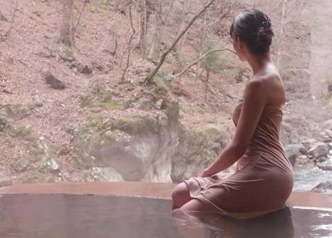 【画像】人妻さん、露天風呂でビキニ姿の尻がそそる