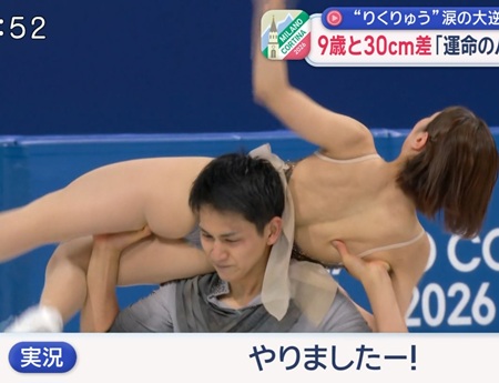 【画像】金メダルのフィギュア・三浦璃来、レオタードが食い込み過ぎて尻肉