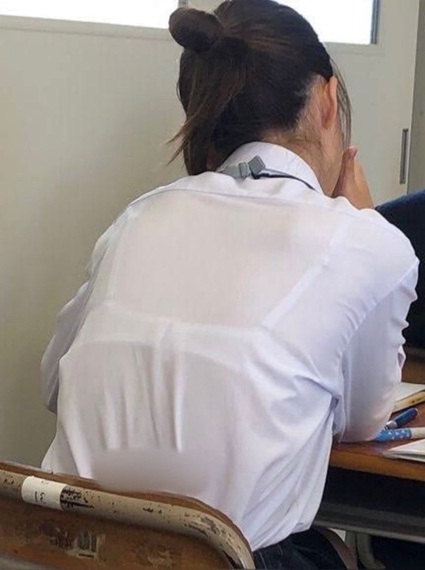 【画像】前の席のJKが透けブラして授業に集中できないよ