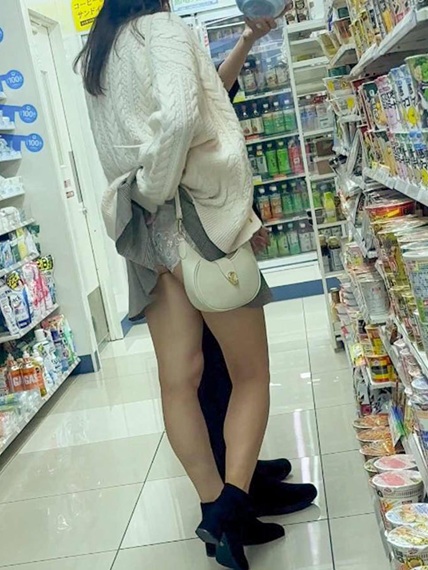 【画像】女子大生さん、コンビニでお尻をかきパンティ丸見え